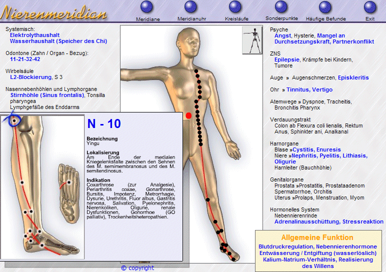 Per systeem en meridiaan geeft de interpretatiemodule aan tot welke storingen, oorzaken of symptomen en ziekten de gemeten afwijkingen in de meridianen kunnen leiden.